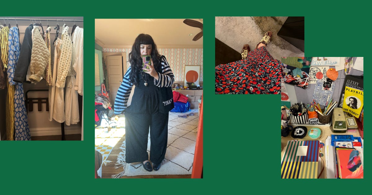 the correct amount of clothes for 3 women to bring for less than 24 hours, still in PANTS!, wore pjs to the hotel lobby to get coffee, a slice of my desk area